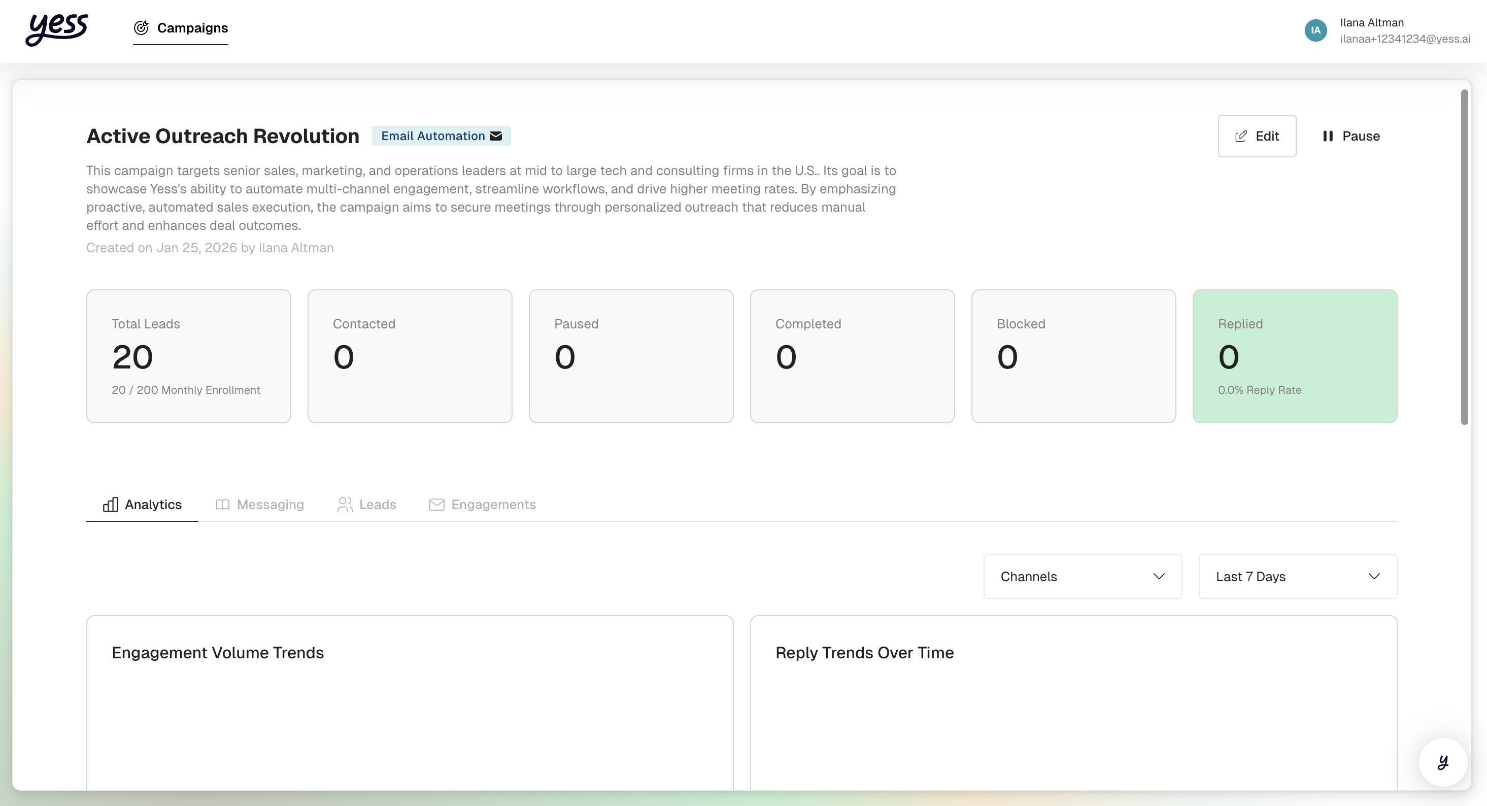 - Engagement Stats: Messages sent, opens, clicks