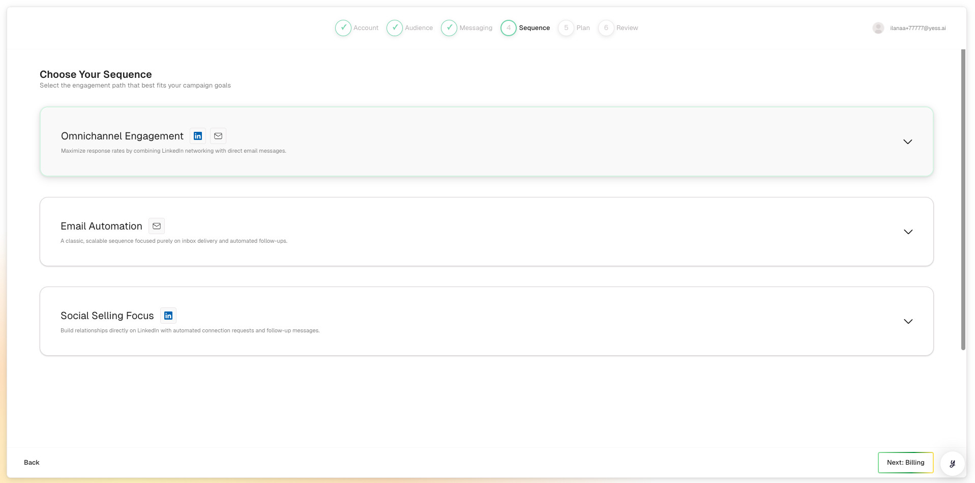 Select a pre-built sequence strategy that defines how and when your outreach happens: